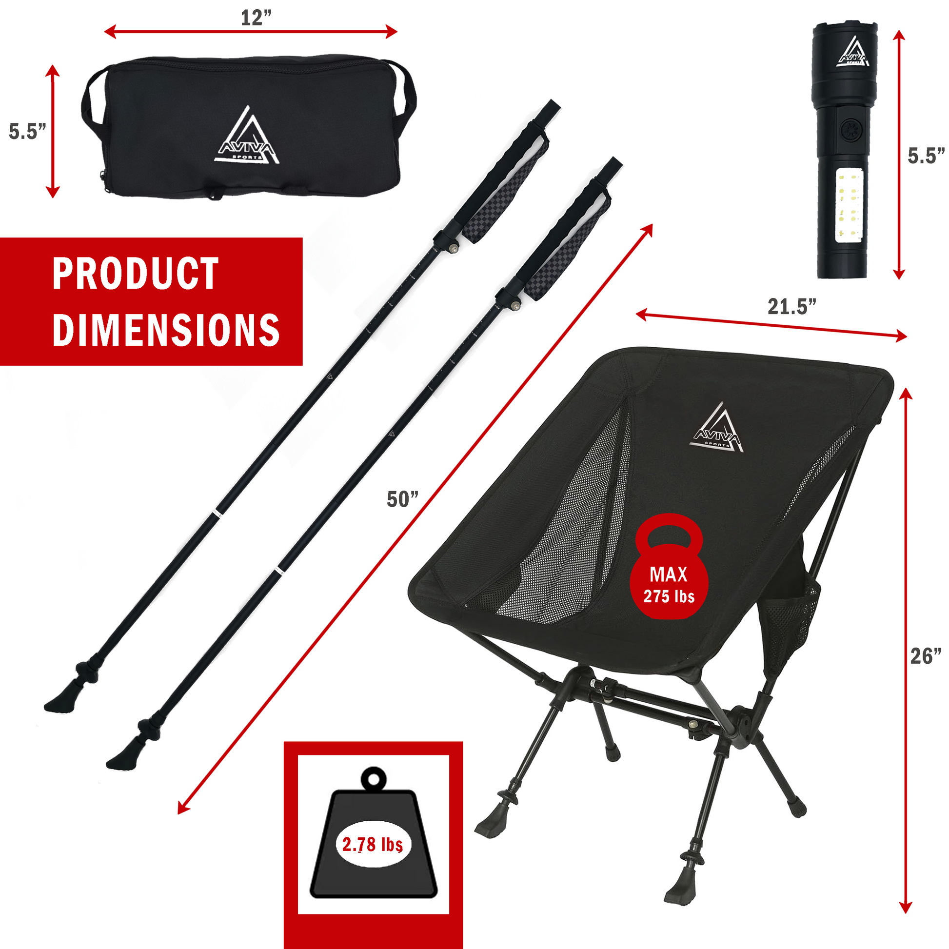 Amazing product. The trekking poles are very good quality and it comes with a flashlight and it can be transformed into a chair super easily. instructions were easy to follow as well.